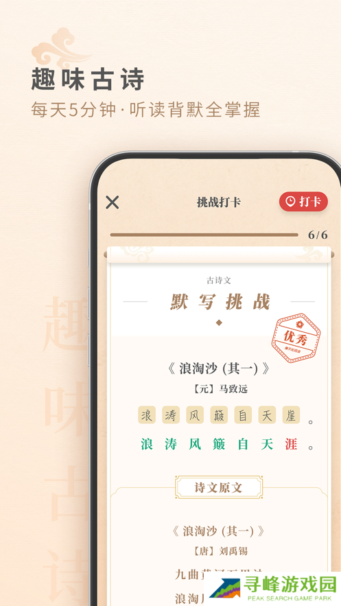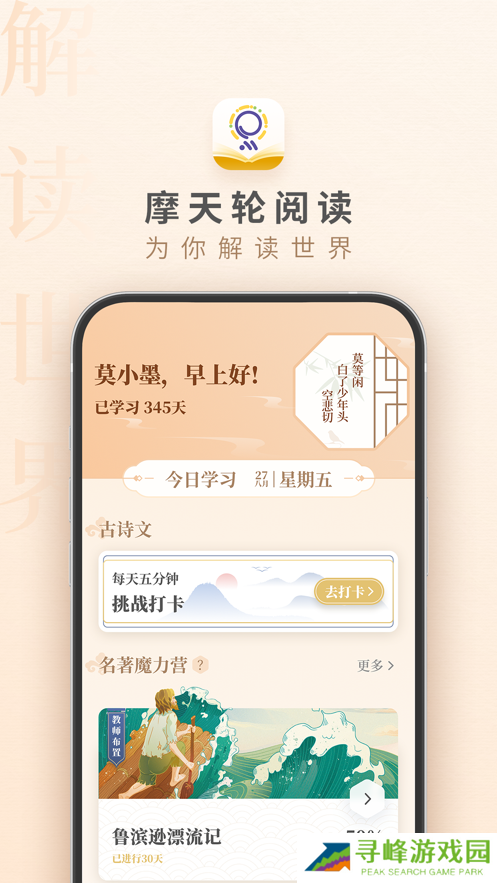 摩天轮阅读是为中小学生们量身定制的课外阅读平台,国内外众多经典名著资源应有尽有,量身定制分层系统的阅读课程,自动生成个性报告。还针对古诗词设置趣味挑战,每天花几分钟学习一段新的古诗词,考试默写不丢分。