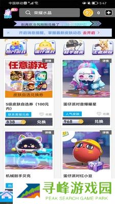 1、王者荣耀、和平精英等游戏皮肤这里都有,通过积分兑换喜欢的皮肤。