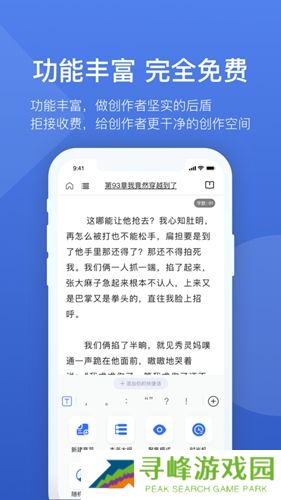 灯果写作是专为小说创作者们打造的一款免费小说写作助手,与传统的手机码字软件相比,当创作者正在编写文章时,会自动淡化其他段落的文本部分,将目光聚焦于当前的段落,帮助创作者们集中注意力,目不斜视创作文章。支持文章云端同步功能,实现手机端与电脑端之间的创作数据互联互通,实时保存文章的修改内容,再也不用担心小说原稿丢失的问题了。