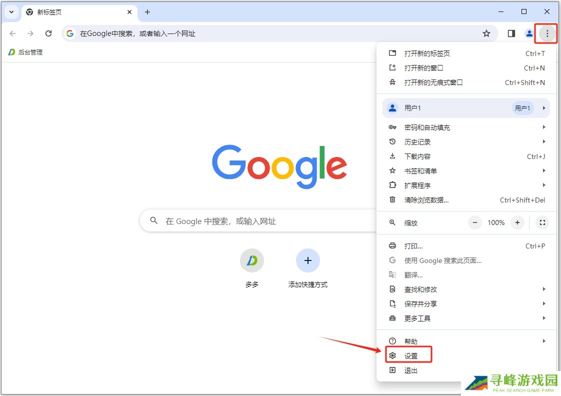 1.运行浏览器后,点击“设置”进入配置界面;