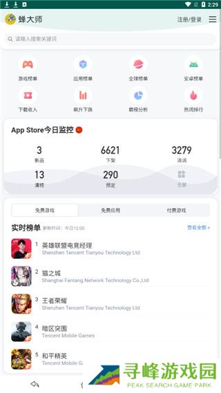 蝉大师是一款针对app下载数据打造的分析平台,Android、IOS所有软件的下载量与关键词搜索量都可以查询,设置特别关注的软件,当数据出现大幅增长或跌出是会第一时间发送消息通知,帮助软件开发商及时调整软件的推广策略。