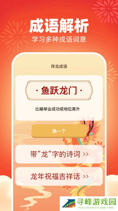 祥龙成语是一款成语学习助手,以包含“龙”字的成语作为主题,为学习者们详细讲解每个成语的具体含义与历史典故,还配有成语相应的例句和问答题辅助记忆,在轻松愉快的氛围中学习新成语。
