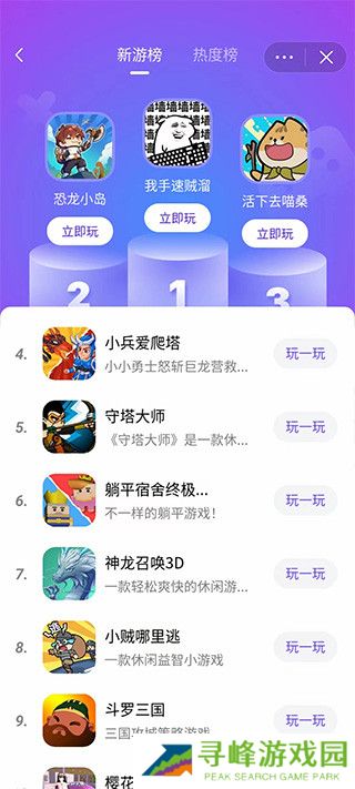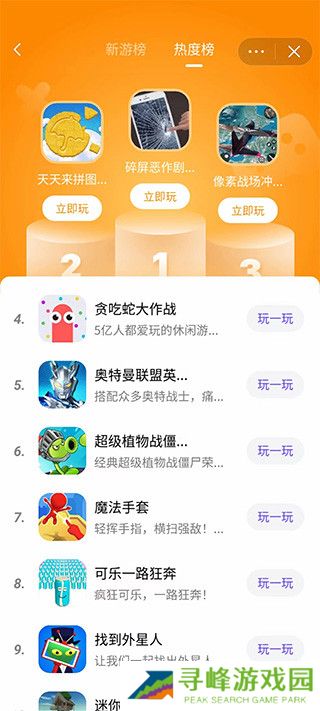 3、内置人气、最新、飙升排行榜,轻松找到近期高人气的小游戏。