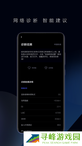 4、如果到突然上不了网或网络不佳的情况,在一键测速App点击诊断并选择对应的问题场景,随后经过检测,即可对信号强度、Ping、LAC、SINR、外网测试等进行诊断,是否有问题一目了然;