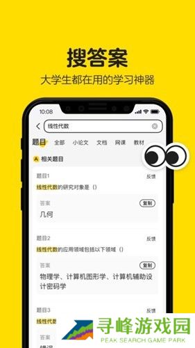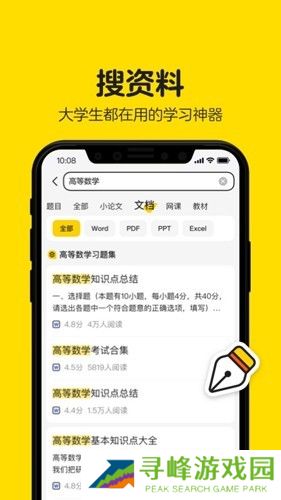 1、搜题、文档、课程、教材汇聚大学所有学习资料,一键搜索应有尽有。