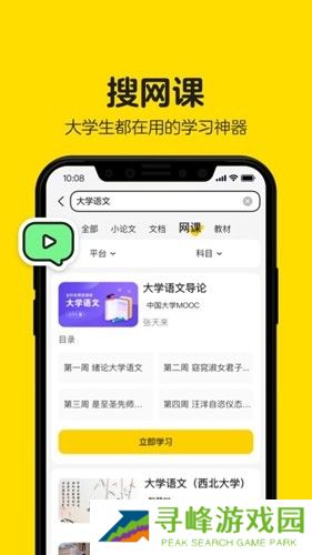 3、搜索问题、文档、在线课程、教材等,收集学校所有学习资料,一键搜索。
