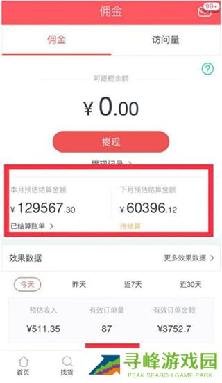 5、点击底部“佣金”栏目,查看实时收入与推广效果数据;