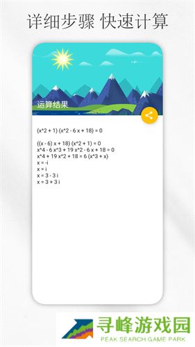 解方程计算器app是一款能帮助你一键解答,帮你更仔细的分析,非常实用方便的方程式计算安卓手机应用软件,拥有全新的界面,精心设计的界面将会给你带来不一样的使用体验,强大的计算能力支持各种类型的方程进行解答,可以解各种方程式,无论是小学、初中,还是高中,甚至大学,只需要输入各种数字,即可快速完成计算。