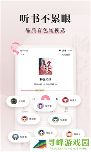 喵爪小说阅读器之中的小说资源不仅仅超多对其中的小说分类还进行了细致的分类,支持按照分类可以更快地找到自己感兴趣地小说类型,同时更新速度还超快,只需将其加入到书架之中即可第一时间接收到正在追的连载小说章节更新通知,听书追书不累眼,支持自由选择听书时的音色以及音速,方便更好地沉浸在听书的剧情之中,首页上还有着智能地推荐功能,发现更多有趣的小说,让阅读不再书荒。