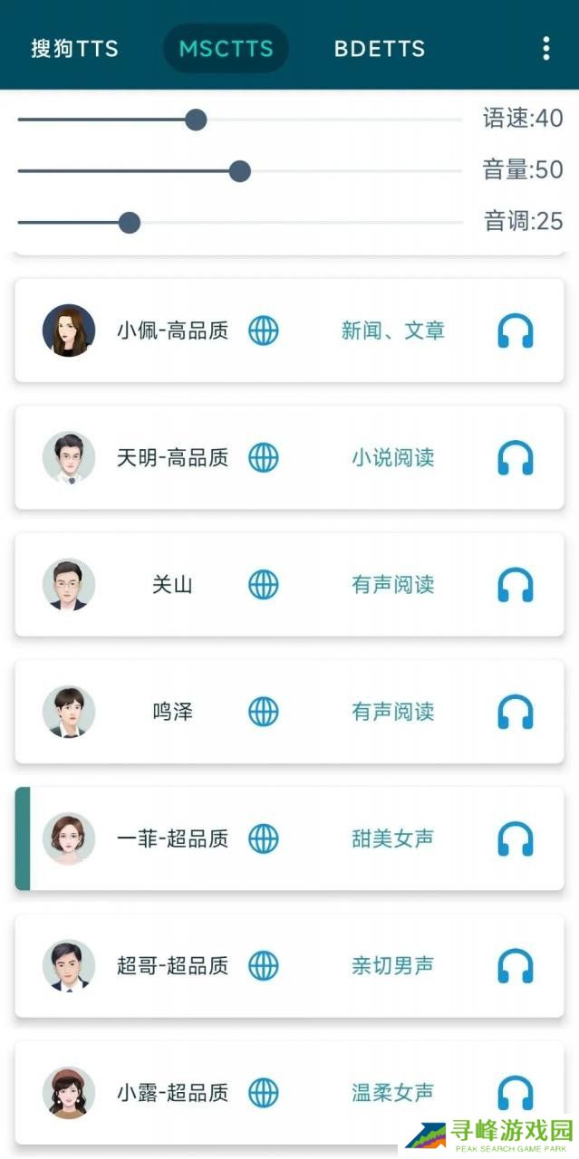 1、高品质男声、女声一应俱全,满足有声阅读、新闻文章阅读需求。