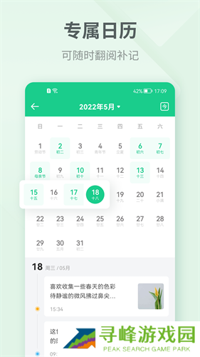 「日历」便捷查看每一天的记录,不错过任何重要时刻