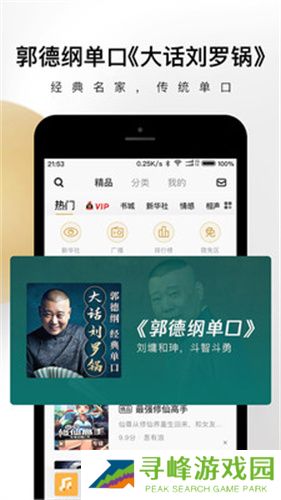 3、精选的电台音频资源,有声小说,搞笑段子脱口秀,音乐情感等优质播放内容。