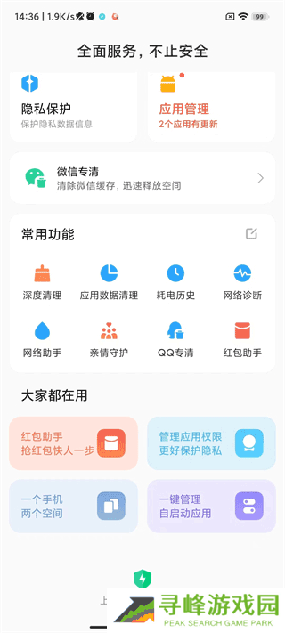 1、小米手机管家还内置如QQ网盘、隐私保护、权限监控等功能,让生活更便捷。