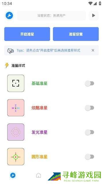 4、点击【准星】专区,可开启准星,准星设置支持自定义。