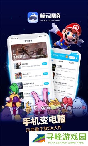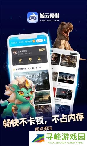 鲸云漫游是一款给喜欢玩游戏的朋友们提供全网最火爆游戏推荐的手机应用,也可以被叫做鲸鱼漫游,每天都有大量新游戏资源供你体验,玩家们可以免费畅玩各种大型3D游戏,无需下载安装,即点即玩。鲸云漫游覆盖web端、PC客户端和安卓端等智能终端,提供无卡顿无延迟的游戏体验。只需将它打开手机即刻变身云电脑,随时随地想玩就玩,同时支持电脑、手机和电视接入,实现三屏合一的游戏体验。