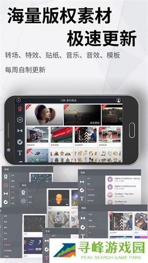 2、内置素材商店,定期更新数千种资源,涵盖音乐、模板、字体至贴纸,一站式满足创意需求。