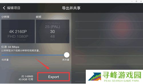 8、最后可选择分辨率、帧频,点击“Export”,就会存到手机相册。