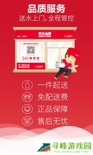 农夫山泉送水到府是农夫山泉旗下的手机订水软件,深入万千家庭与企业的生活饮水需求,简单几步就能将最优质的农夫山泉水送上家门。定期举办折扣送水活动,比超市中的价格更便宜,全场饮用水0配送费,全程管控,售后无忧。
