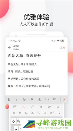 简书安装包app是一款以碎片化记录创作为主的写作编辑社区,用优雅的设计让你能保持愉悦的心情开展文案写作工作。创作者可一次性上传多张图片,借助实时保存功能及时记录您写下的文字,当设备突然没电关机的时候也不会丢失草稿数据。您可创作一篇短文、一首诗、一幅画,用您精妙的构思与优美的文笔,让您的创作得到他人的赞赏。