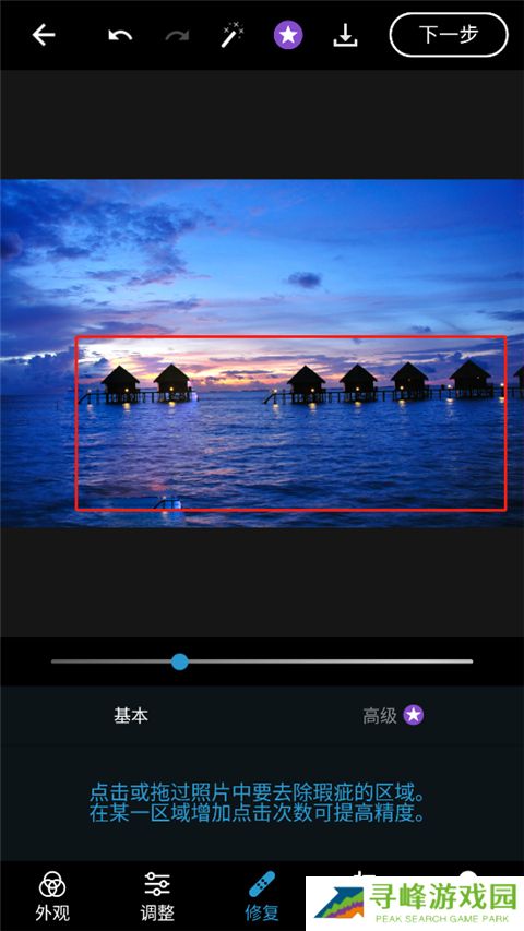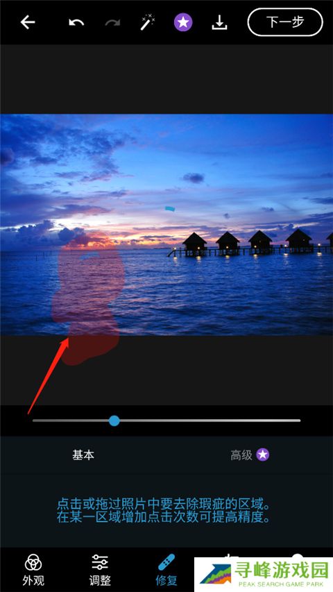 7、第三个是修复工具,可通过手指涂抹替换图像局部区域,涂抹位置会以红色高亮显示;