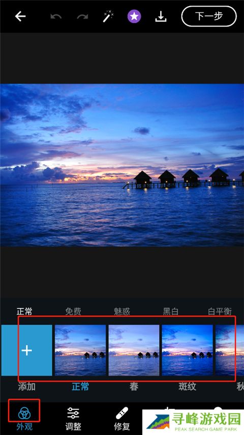 5、点击左下角第一个图标(滤镜),可以浏览并应用系统预设滤镜,也可自行组合搭配;