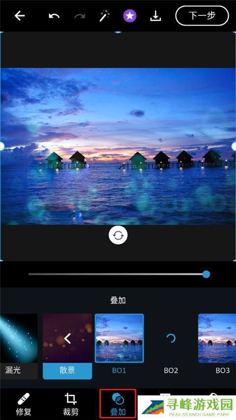 10、点击特效图标,可添加漏光、杂色等艺术效果,也可叠加纹理,使图片更具表现力;