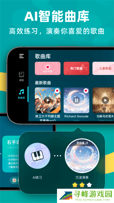 自学钢琴app是能够让零基础的小白也能轻松上手进行钢琴练习的小伙伴,支持定制出专属于自己的钢琴学习课程,轻轻松松上手学习,助你里迅速地走进专业的大门,来让钢琴地自学更加高效。其中自带ai智能曲库,海量钢琴音乐可供自由选择进行练习,高效练习,来演奏出自己喜欢的歌曲,其中自带的钢琴弹奏有着超强的实时反馈功能,精准识别出都有哪些错误。
