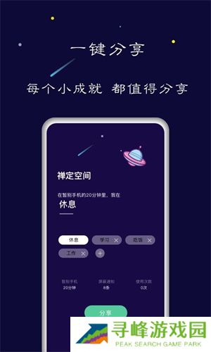 1、禅定空间帮助您告别手机控,专注学习,回归自律,不被手机打扰。