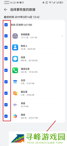 4、勾选需要恢复的手机数据,最后点击下方的“恢复”即可。