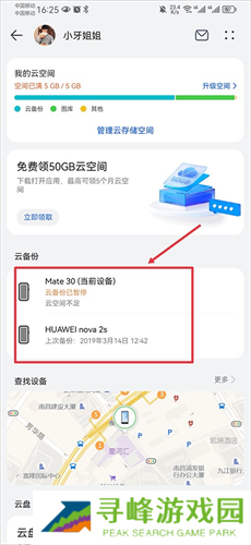1、打开荣耀云空间进入首页,选择需要恢复数据的手机。