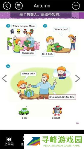 译林小学英语app是一款专为江苏、山西等地区一到六年级小学生打造的英语教学辅导软件,采用同步英语教材的方式让孩子将当日学习到的知识点加深理解。学生可在软件提供的电子教材上实现哪里不会点哪里的操作,搭配上预习功能将学习进度先于学校一步,让孩子在课堂上能轻松得到老师的表扬。还有跟读功能随时复习单词读音,口语讨论更加轻松。