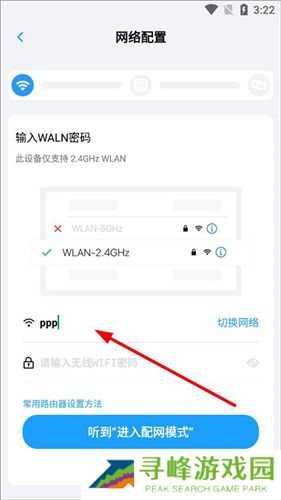 4、可选择手动输入WALN密码,点击进入配网模式扫描二维码即可