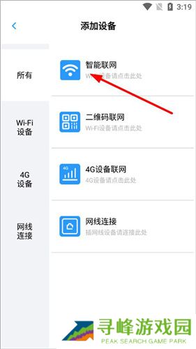 2、添加设备有4种方式:智能联网、二维码联网、4G设备联网、网线连接