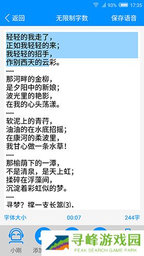 1、能主动将文字转变成语音朗读出来,多种声音可选,可以调节朗读的速度。
