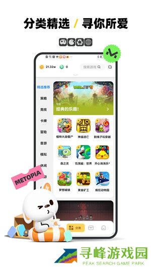 3、精选:热门推荐、热门排行、分类,在这里找到喜欢的游戏。