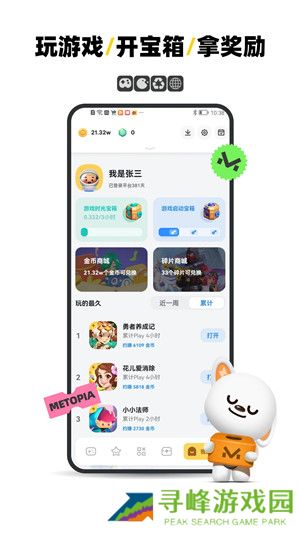 2、通过火箭龟启动任意游戏,产生的游戏时长可开启宝箱获得金币奖励,免费兑换游戏豪礼。