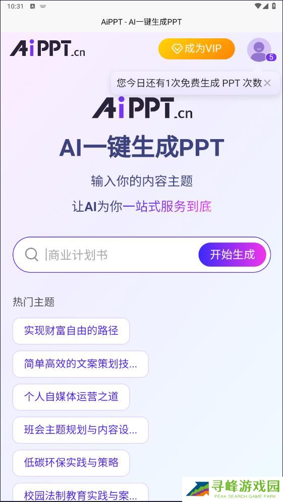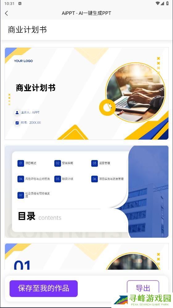 至此,一份完整的商业计划书PPT已然完成。每个用户每天均可享受两次免费生成机会。