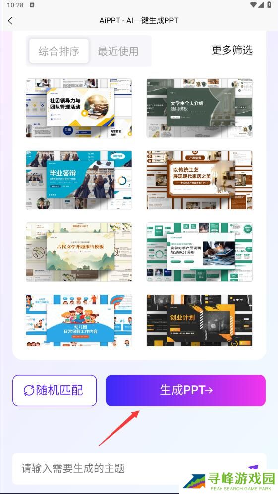 2.主题驱动快速生成:仅需输入关键词与核心内容,系统即可自动匹配模板、素材与排版,迅速产出专业PPT。