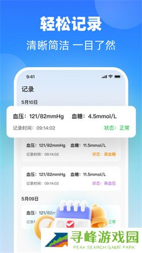 2、拥有便捷的时间记录统计管理功能,血糖血压数据状态的精确检查与查看。