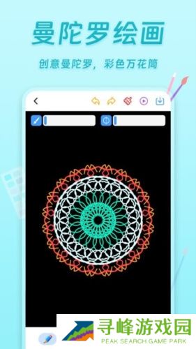 3、有趣的万花筒绘图模式,丰富的颜色、画笔选择,自定义画笔大小、形状。