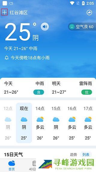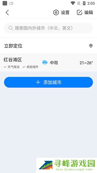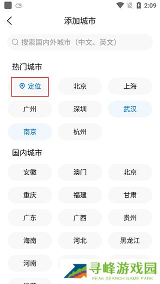 3、进入页面后,可以选择直接定位自身所在城市,也可以手动添加。