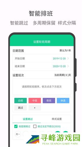 3、为倒班人群专门设计的的专属日历班表,支持手动和自动两种可更改的排班方式。