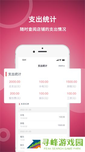 2、支持在线会员管理、店铺管理、员工管理、在线记账、数据统计、数据导出等。