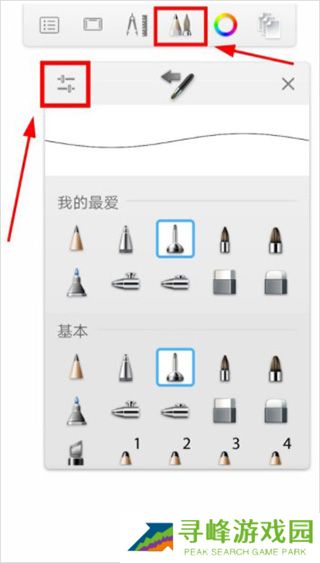 4、点击第四个图标,选择不同类型的画笔;