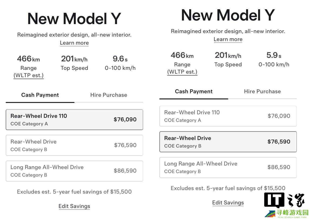 特斯拉的这款“Real-Wheel Drive 110”车型正是基于这样的市场背景推出的。通过降低动力性能,这款车型得以归入A类COE的范畴,从而使得消费者在购买时能够节省约7万元人民币的购车成本。这对于在新加坡市场寻求高性价比购车方案的消费者来说,无疑是一个极具吸引力的选择。
